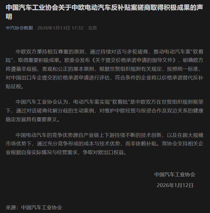 凤凰彩票官网app 中国汽车工业协会发布关于中欧电动汽车反补贴案磋商取得积极成果的声明