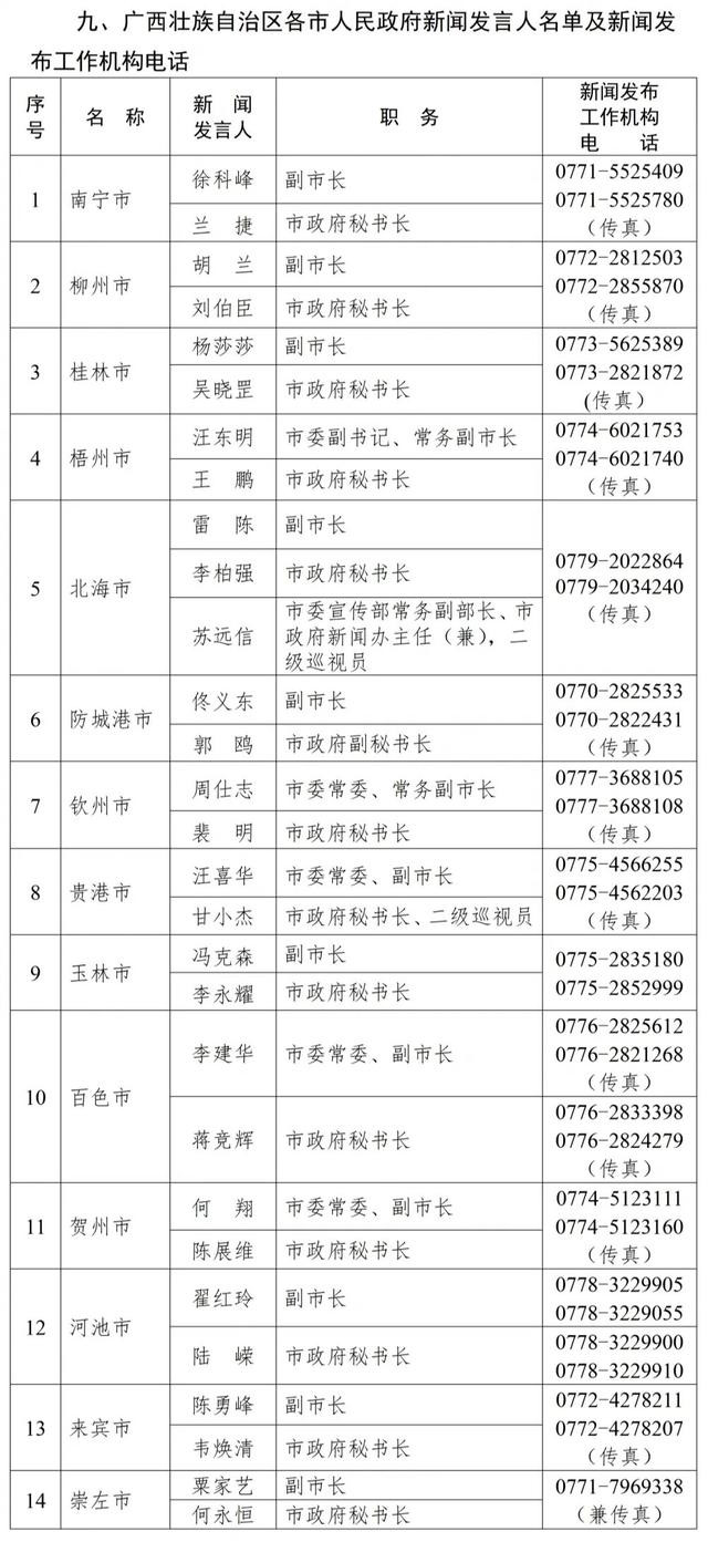 凤凰彩票welcome 广西壮族自治区2026年新闻发言人名录来了