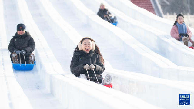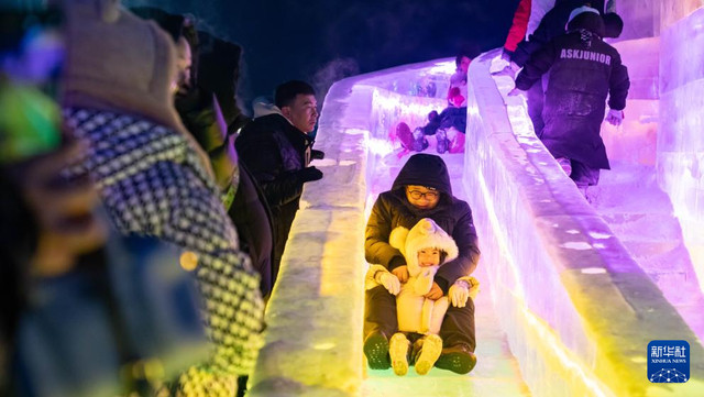 人们在呼和浩特第五届欢乐冰雪节上游玩(2025年12月31日摄)。自2025年12月开始,呼和浩特市持续推出300余项融合冰雪运动、文化体验、潮流消费等内容的冬季活动,在深化文旅融合的同时,激发冬季消费活力。新华社发(许婷摄)pagebreak