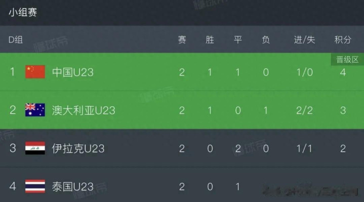 在对阵澳大利亚队取得胜利后,U23国足积分达到4分排在小组第一,占据出线主动权。中国足球再一次走到了“打平即可出线”,“打平即可创造历史”的时刻。