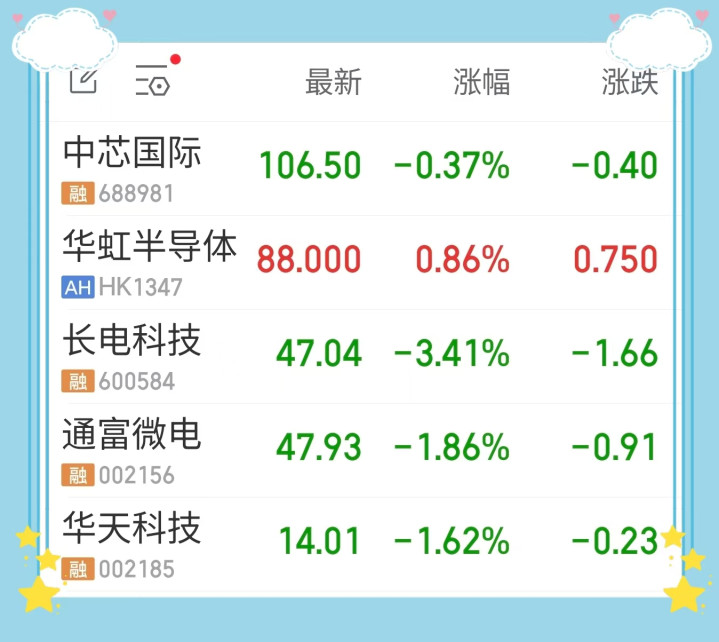 中芯国际、华虹半导体、长电科技、通富微电、华天科技