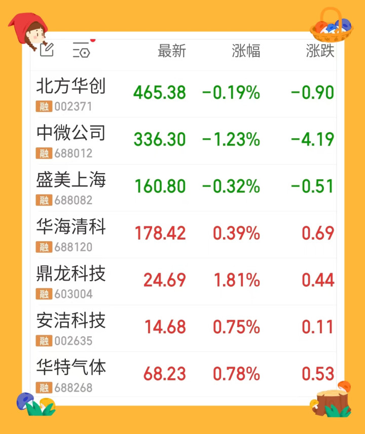 朔方华创、中微公司、盛好意思上海、华海清科、鼎龙股份、安集科技、华特气体