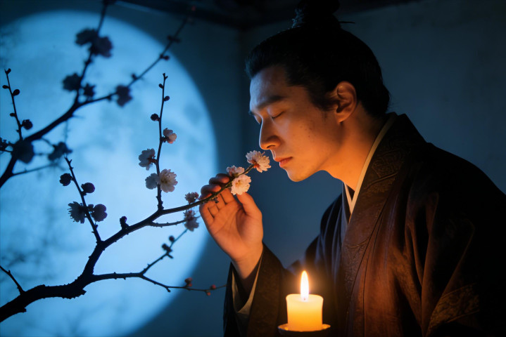 后两句“坐裛暗香供鼻观,小窗寒月浸疏枝”陡入静境:“裛”字极妙,写暗香如薄雾轻沾衣袂,非扑面而来的浓烈,是需静坐细品的幽息;“鼻观”化嗅觉为视觉,将无形香气凝作可观的清逸。“小窗寒月浸疏枝”则以月光为砚,寒梅为墨,疏枝在月辉中洇成淡墨长卷——窗是取景框,月是滤镜,人与梅共处于一方被寒色浸透的澄明里。