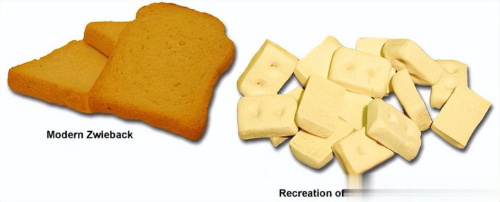 Update: 二战时期的 Zwieback 跟我们现在看到的版本长得不一样. 请参考下面的对比图: 左边是现代的产品, 右边那个才是二战期间产品.